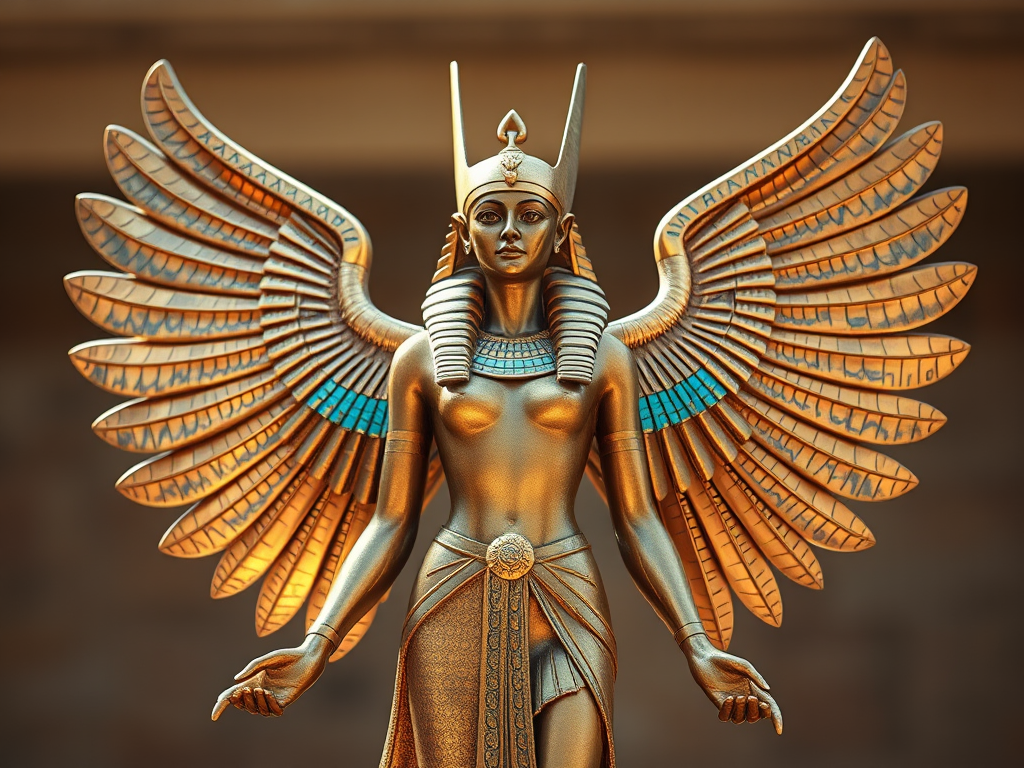 - Une image ou une représentation d’Isis (statue, carte, ou symbole ailé).
